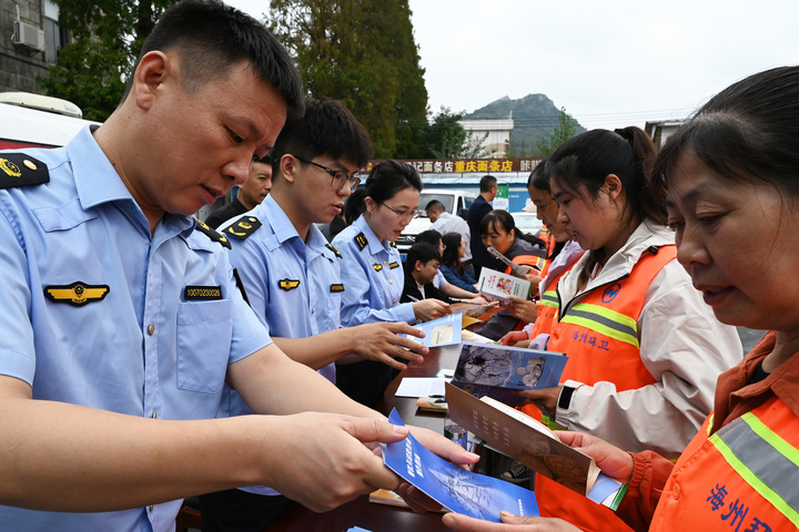 活动首先进行的是慰问环节,这一环节也成为海州区市场监管局“食药安邻里”惠民服务的生动实践阵地。海州区市场监督管理局工作人员不仅将经过整理抽检合格的米、面、食用油等民生类备份样品物资,逐一送到20位环卫工人手中,还现场搭建起“食药安科普小课堂”,用通俗易懂的语言讲解食品安全常识——从如何辨别过期食品、查看食品检验合格标识,到日常食材的储存保鲜技巧,手把手帮助环卫工人提升食安防范意识。这些物资虽不厚重,却既是对环卫工人辛勤付出的认可与感谢,更是“食药安邻里”服务贴近基层的具体体现。一位环卫工人接过物资后感动地表示:“不仅拿到了实用的东西,还学会了怎么看食品合格不合格,太贴心了,我们会继续做好本职工作,让花果山街道的环境更整洁。”随后,花果山街道的城管队员们也收到了这份包含食安关怀的慰问物资,让他们切实感受到来自社会与职能部门的双重关爱。