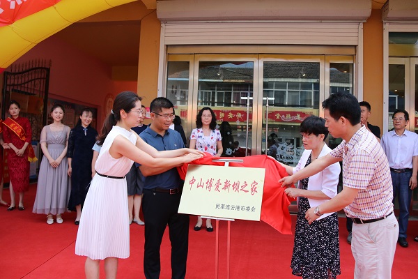 在热烈的掌声中,民革连云港市委主委、市人大常委会副主任李萌,海州区新闻办副主任、区全民阅读促进会会长于洋,海州区委统战部副部长刘永柱以及海州区新坝镇镇长闫美玲共同为民革连云港市委高新区二支部中山博爱新坝之家揭牌。